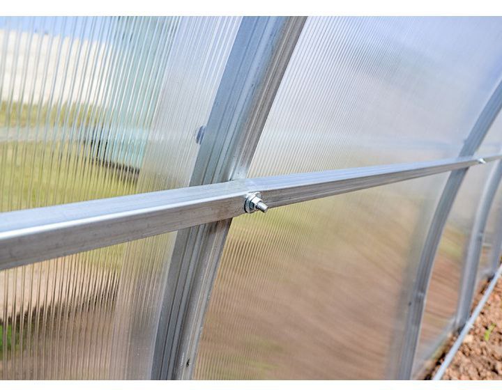 W celu uzyskania maksymalnej sztywności front i tyl szklarni zostały spawane, łuki są jednolite, bez węzłów połączeniowych.
